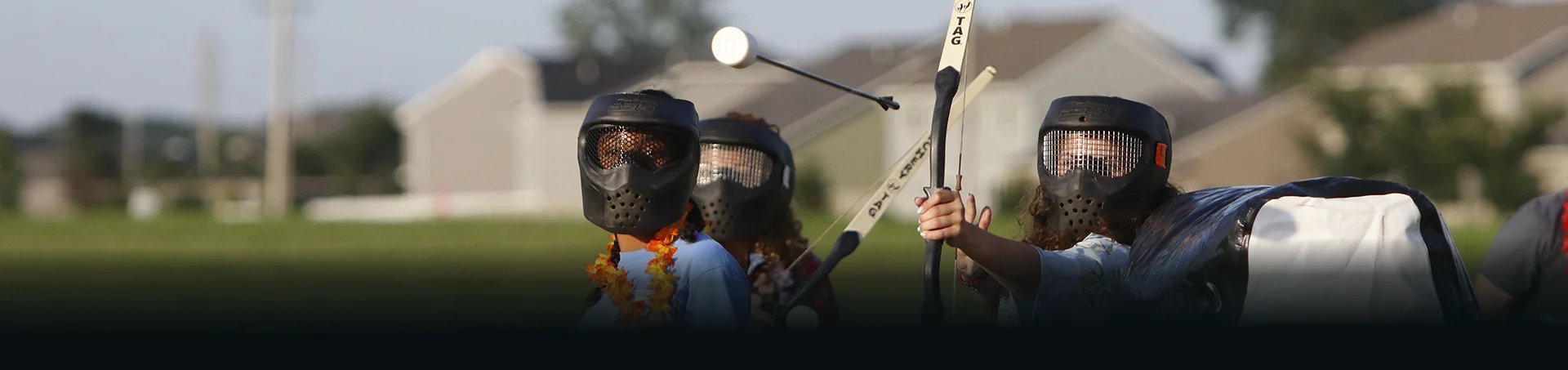 Contrairement à d’autres sports, le seul équipement de sécurité requis pour jouer à Archery Tag® est un masque de protection. Les joueurs ne ressentent pratiquement rien lorsqu’ils sont touché avec nos flèches Archery Tag®.
